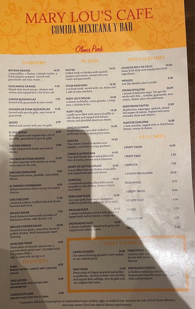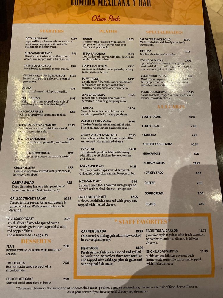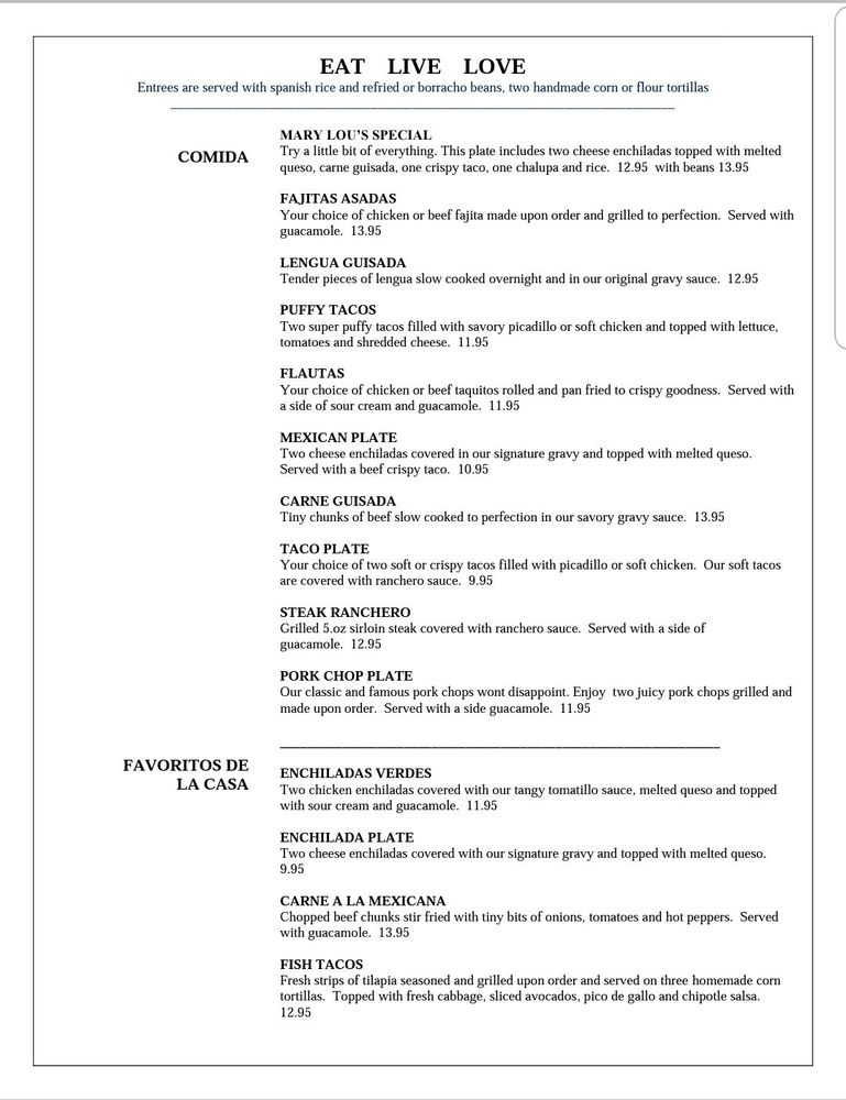 Mary Lou's Cafe, located in San Antonio, is a Tex-Mex-Mexican restaurant offering a diverse menu with options for breakfast, lunch, and dinner. The breakfast platos feature traditional dishes like Huevos Rancheros and Chilaquiles, while the Pancakes, Waffles, and French Toast section offers a delicious variety. Customers praise the flavorful Carne guisada taco and fresh guacamole taco, as well as the hearty Carne guisada plate. The outdoor seating area provides a pleasant dining experience, and the attentive staff, particularly Carlos, ensures top-notch service. With a full bar, free Wi-Fi, and options for catering and delivery, Mary Lou's Cafe caters to a wide range of preferences. If you're looking for a spot with good food, friendly service, and a vibrant atmosphere, Mary Lou's Cafe is worth a try.